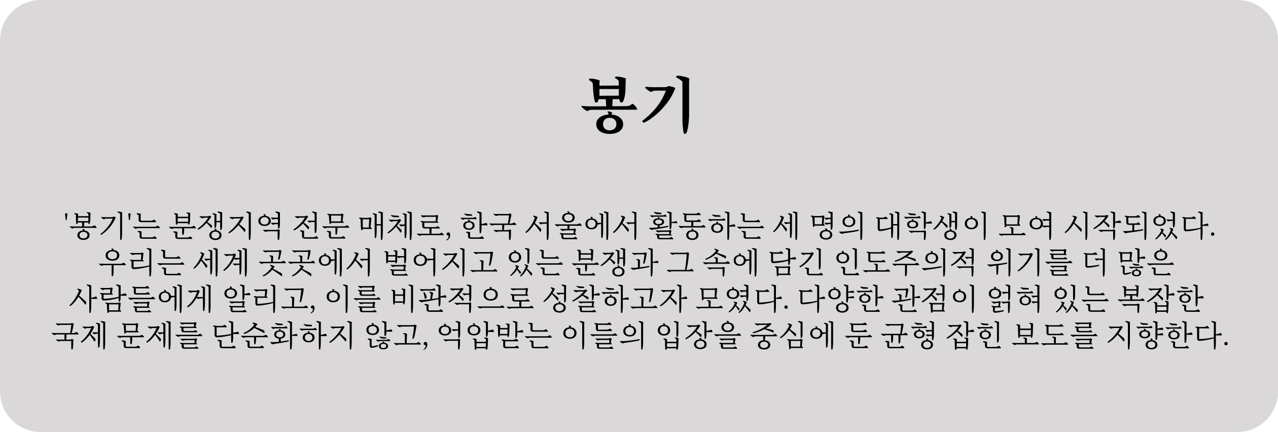 봉기가 벌써 발행 1주년을 앞두고 있습니다. 🥳 그간 세 개의 볼륨(Volume)을 발행하는 동안 형식에 각종 변주도 주고, 봉기가 처음 주목한 분쟁인 이스라엘 학살을 다각도에서 조명하려고도 했는데요. 겉으로 보기엔 큰 차이가 없을 수도 있지만, 그 뒤엔 때로는 밤을 세워가며, 때로는 언성을 높여가며 치열하게 고민한 편집자 삼인방이 있었습니다. 특히나 우리 고민의 결과가 독자 여러분께 가닿았을지 조마조마 하던 삼인방이요.